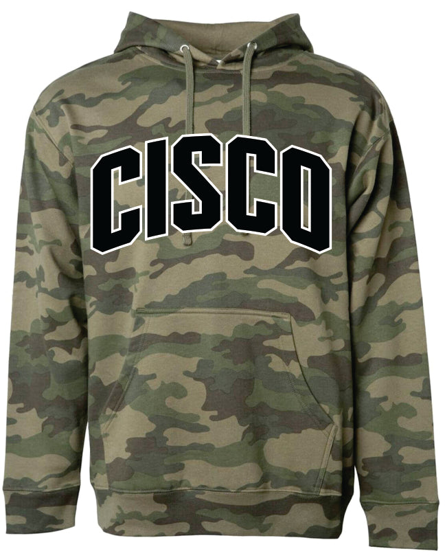 This is a Pre-Order.  The DEADLINE to order is Sunday, November 30thShow your support for the Cisco Loboes with a new camo sweatshirt.  Crewneck Sweatshirt or Hooded Sweatshirt with Cisco Design on the front.  2 colors to choose from.