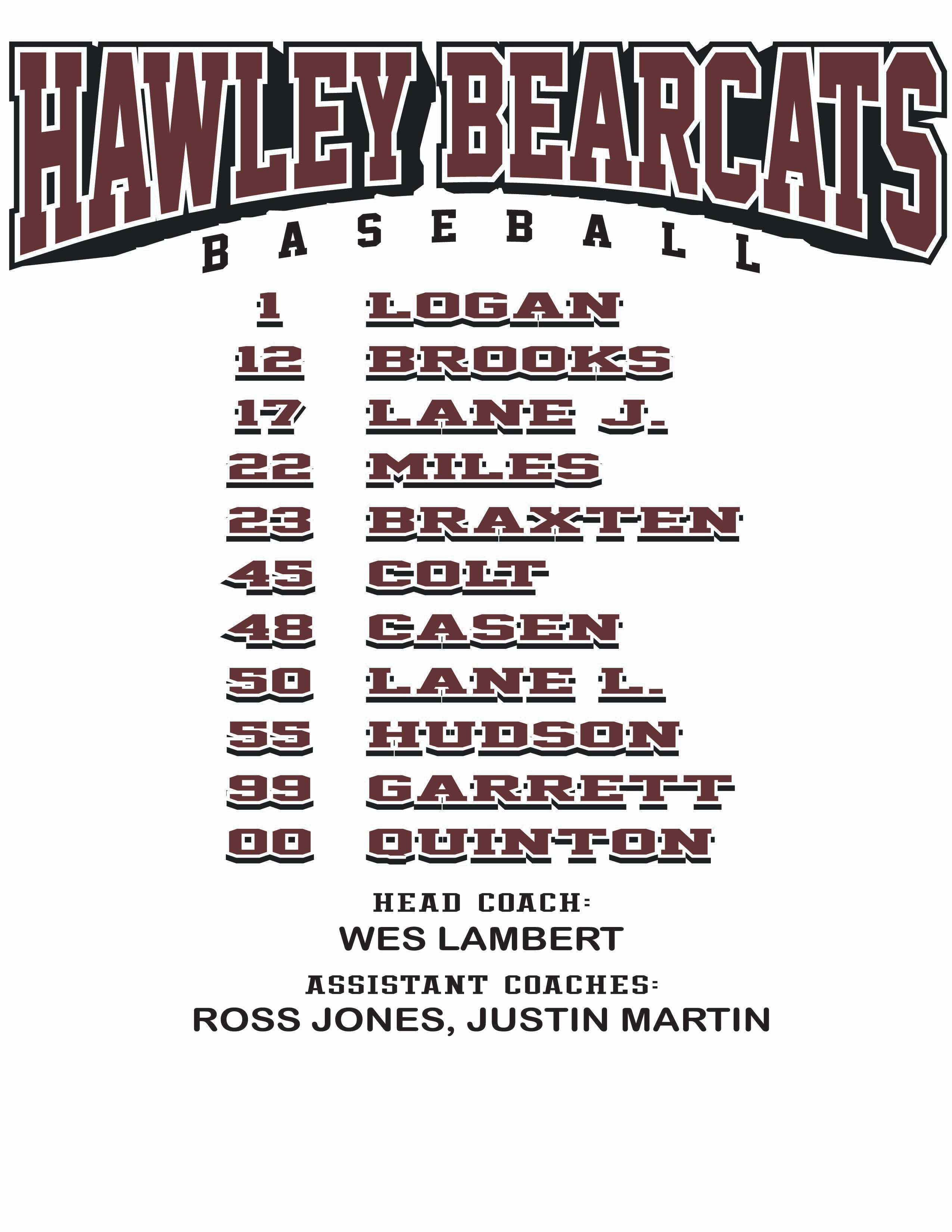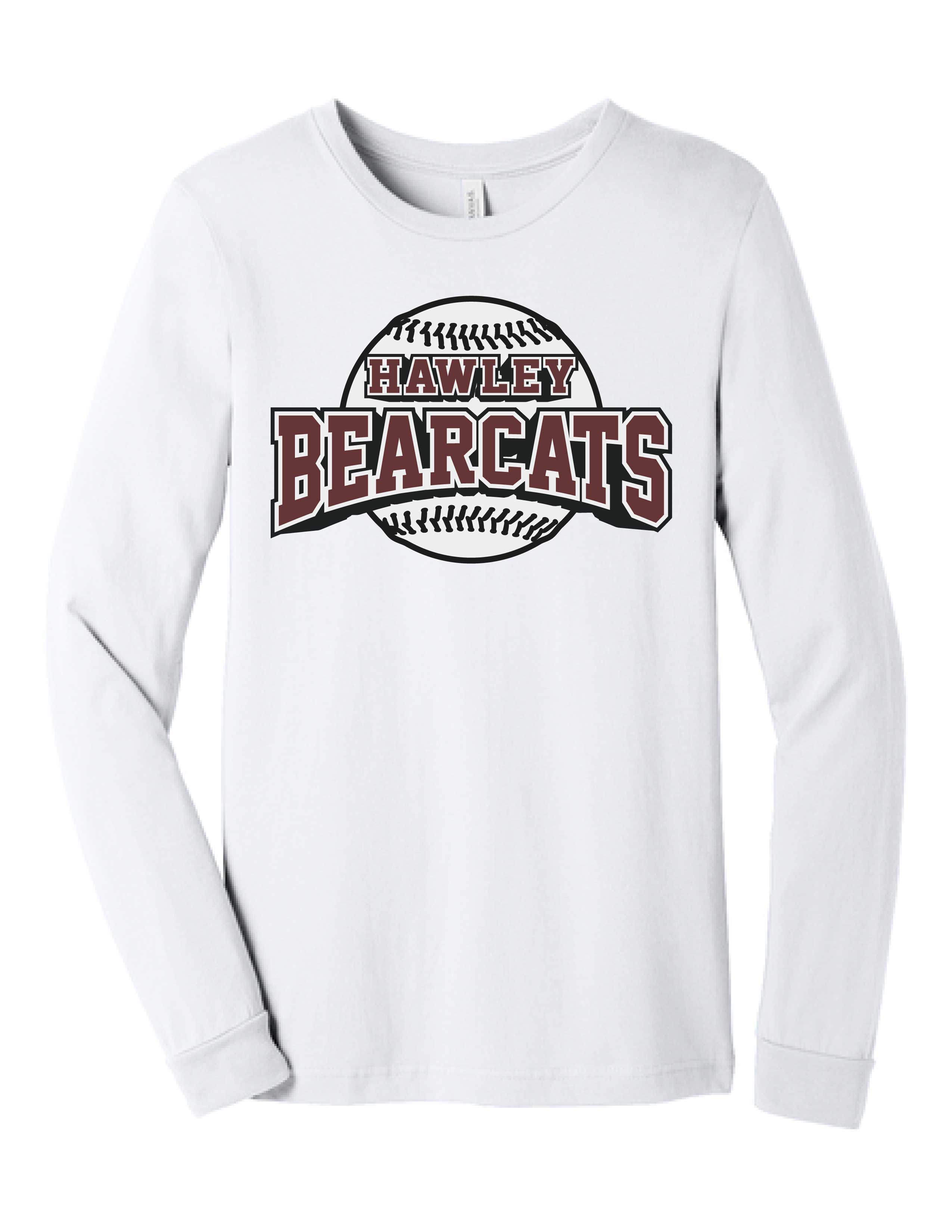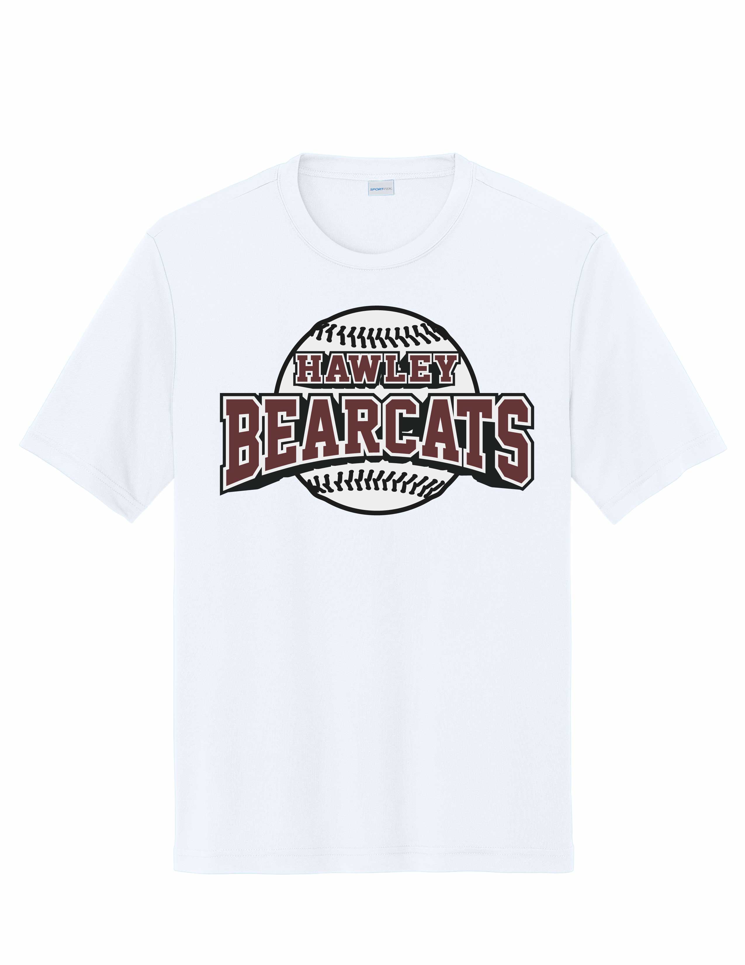 This is a Pre-Order!  The DEADLINE to order is on Sunday, March 8th. Show your support for the Hawley Bearcat Minor Baseball team with some merchandise.  Hawley Baseball design on the front with Roster on the Back of a White Tee.  6 different shirt options to choose from Short Sleeve or Long Sleeve - Cotton or Wicking, Crewneck Sweatshirt or Hoodie.