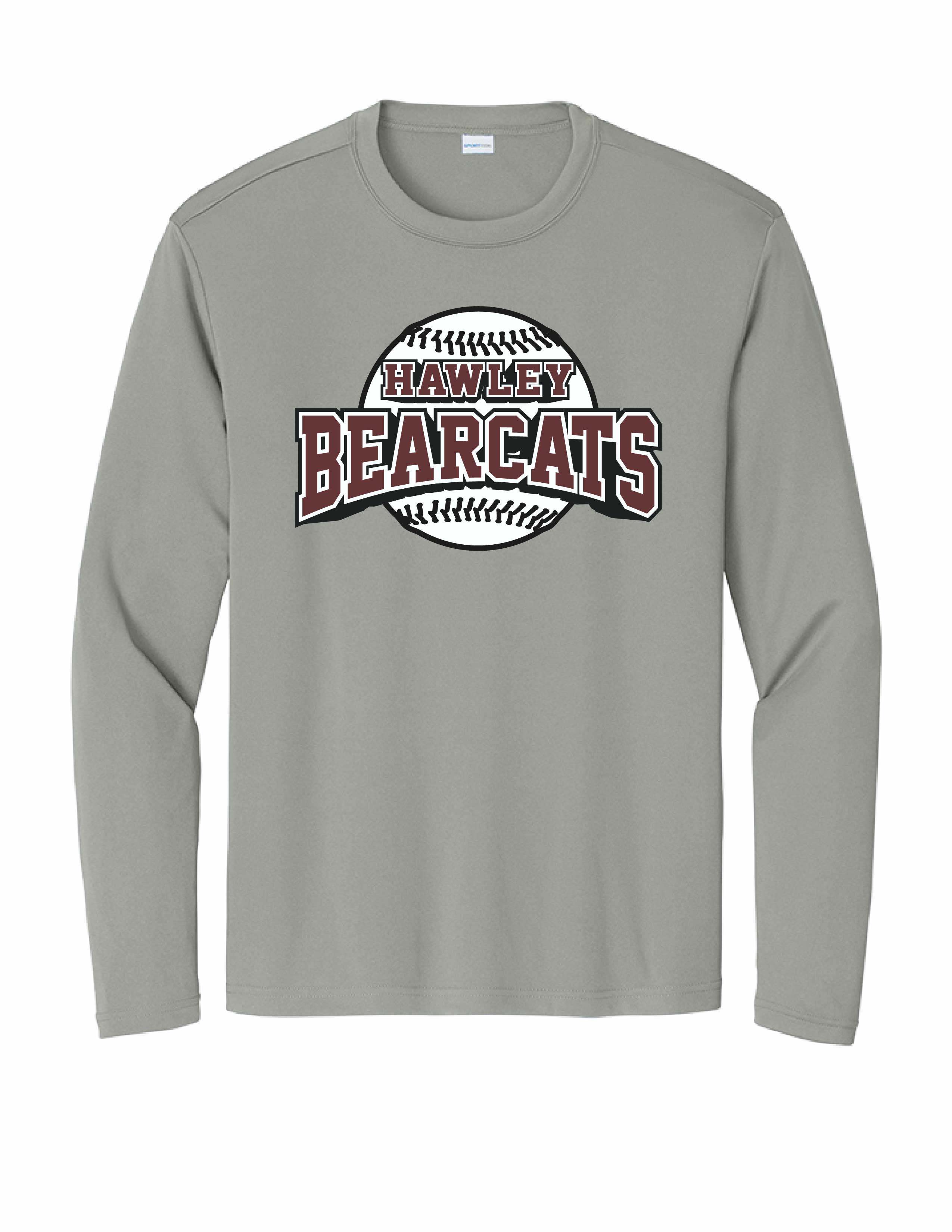 March 8th. Show your support for the Hawley Bearcat Minor Baseball team with some merchandise. Hawley Baseball design on the front with Roster on the Back of a White Tee. 6 different shirt options to choose from Short Sleeve or Long Sleeve - Cotton or Wicking, Crewneck Sweatshirt or Hoodie.
