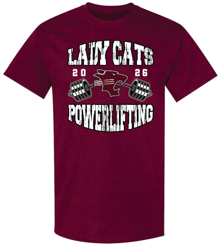 This is a Pre-Order! The DEADLINE to order is on Sunday, November 23rd. Show your support for the Hawley Lady Cats Powerlifting team with some merchandise. Hawley Powerlifting design on the front of a Maroon Tee. 6 different shirt options to choose from Short Sleeve or Long Sleeve - Cotton or Wicking, Crewneck Sweatshirt or Hoodie.