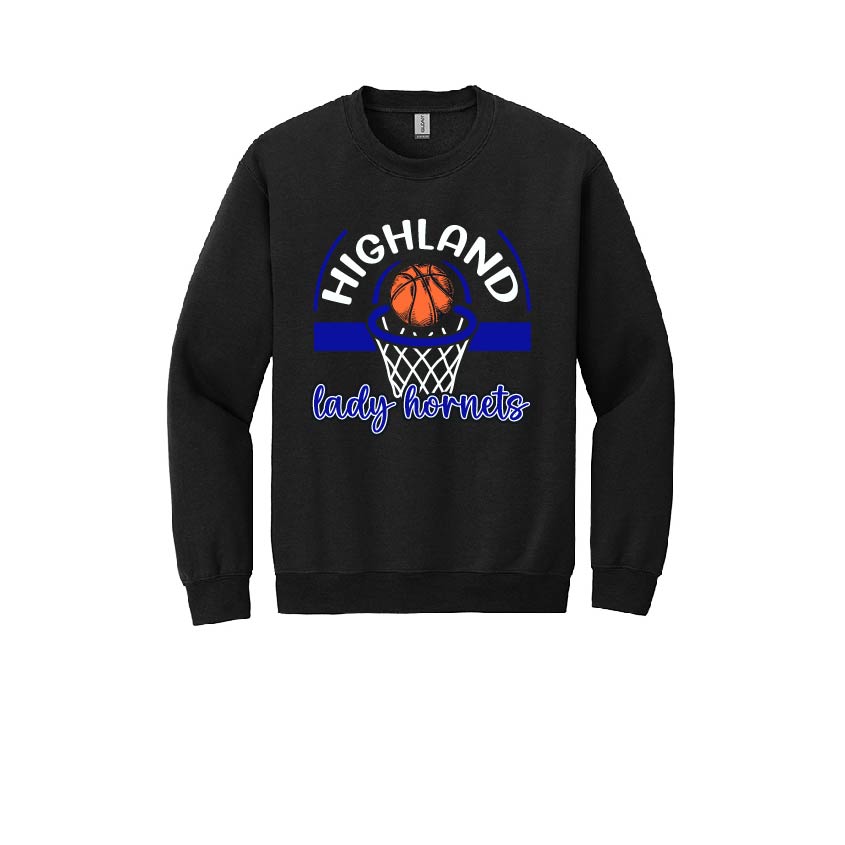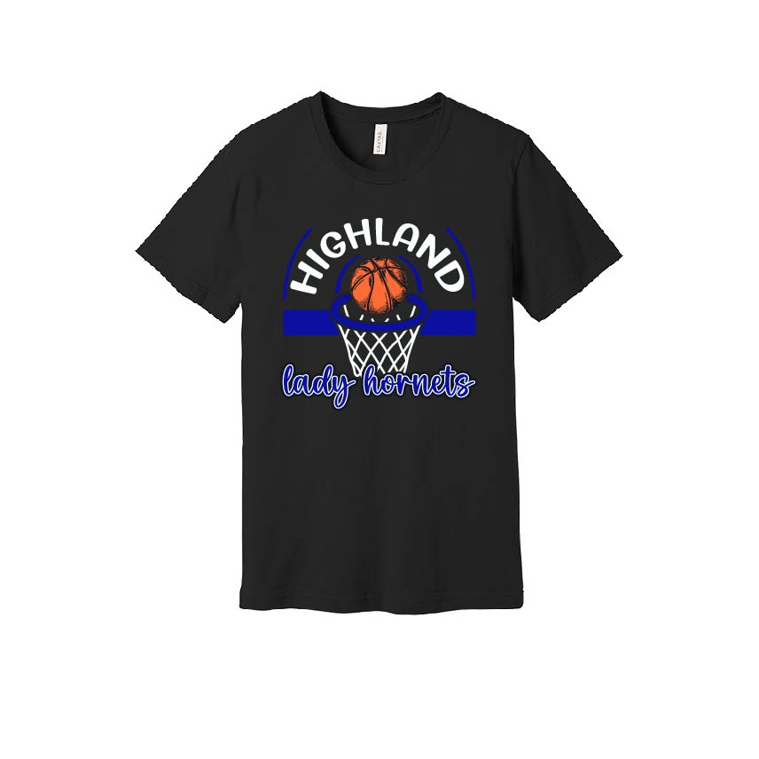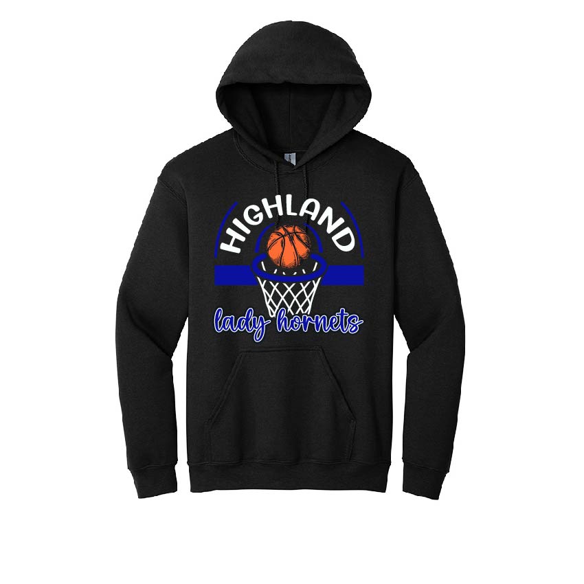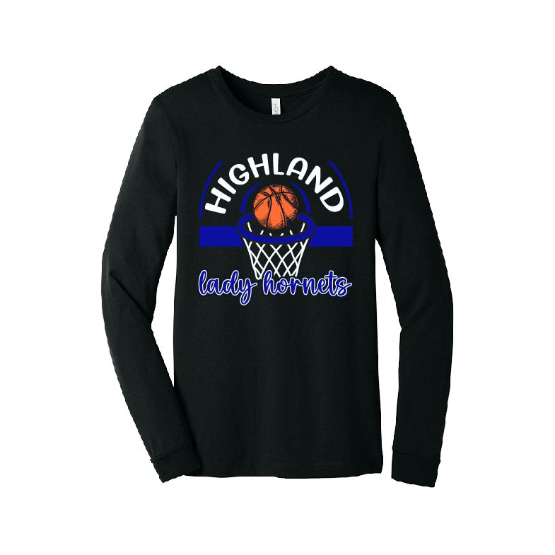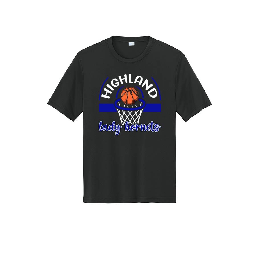 This is a Pre-Order.  The DEADLINE to order is Thursday, November 20th.  Show your Highland Lady Hornets support with some Basketball merchandise.  Highland Lady Hornets Basketball design on Black.  6 Shirt options are available to choose from Short Sleeve or Long Sleeve Cotton and Dry-Fit, Crewneck Sweatshirt or Hooded Sweatshirt.