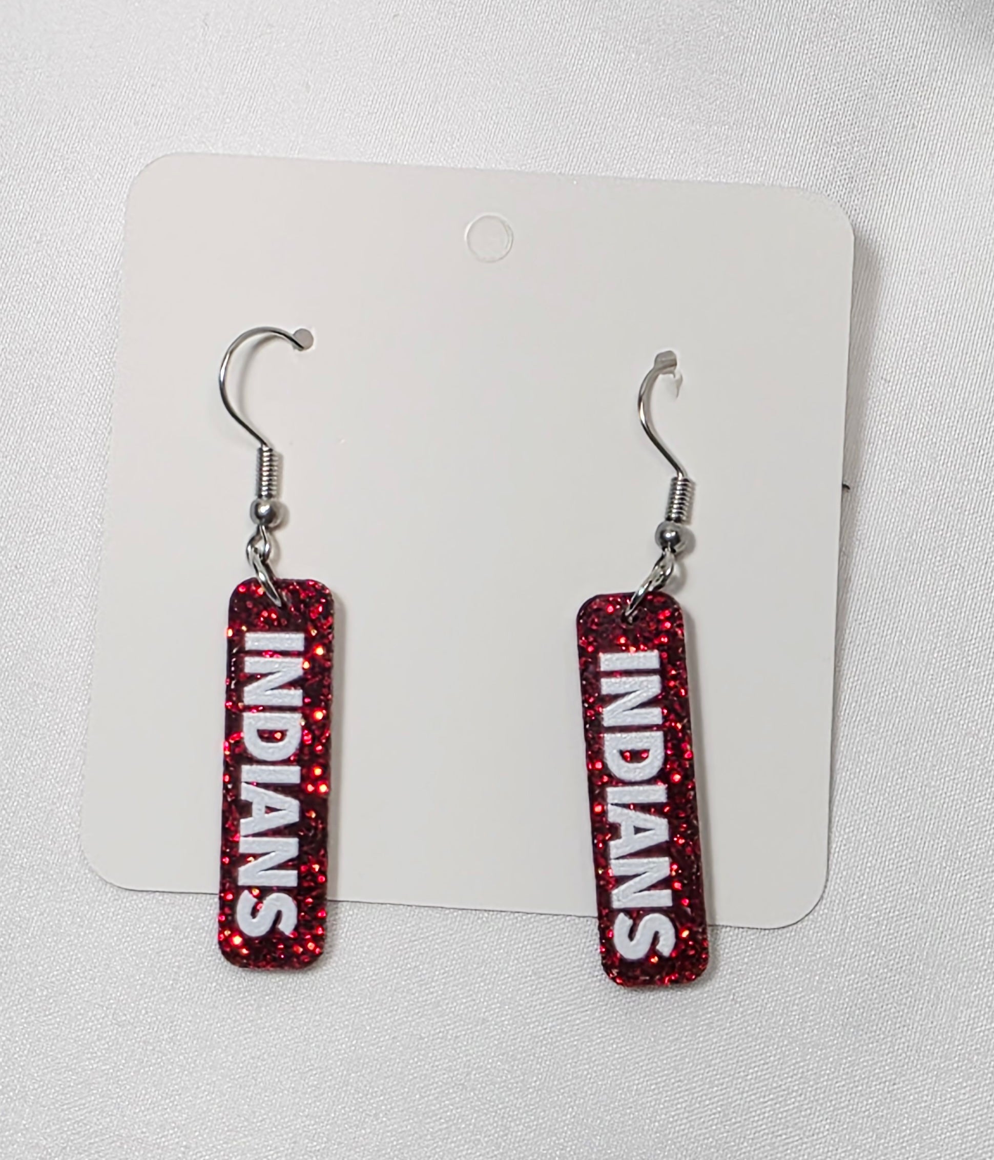 Custom Indians Game Day earrings with glitter acrylic.