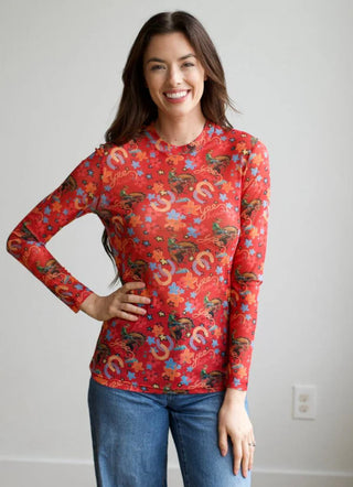 Teal Gingham Bucking Horse Long-Sleeve Pearl Snap