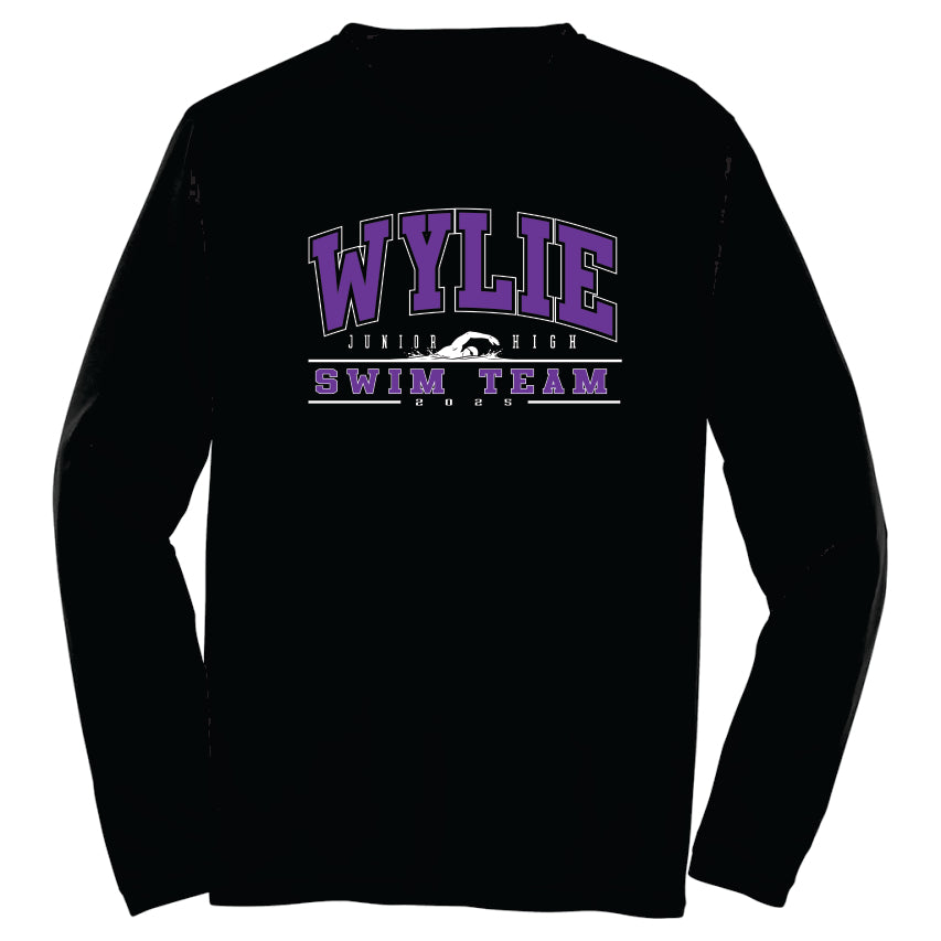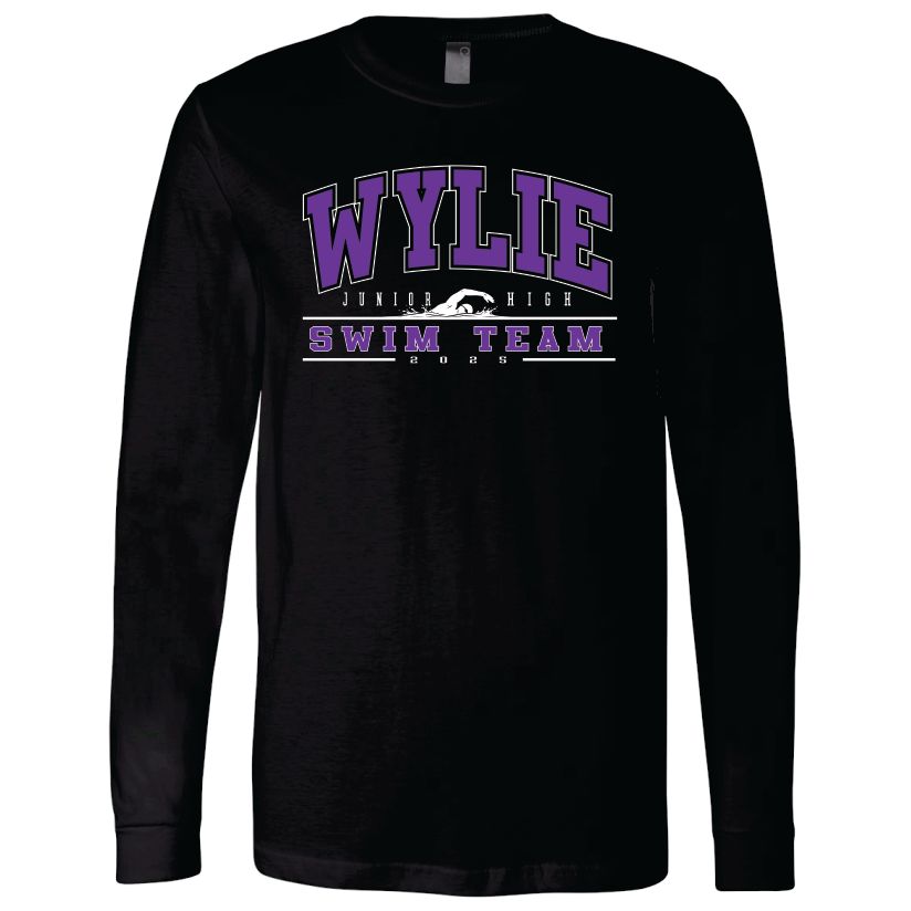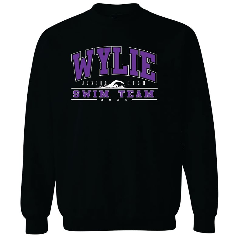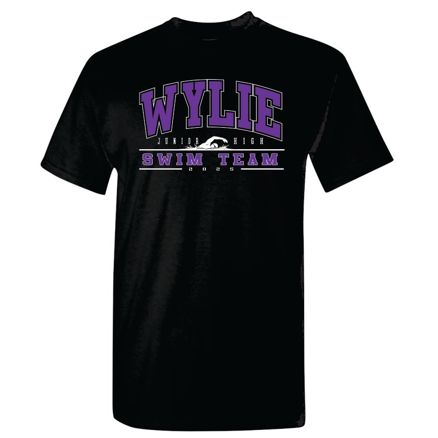 This is a Pre-Order. The DEADLINE to order is Monday, March 30th. Show your support for the Wylie Junior High Swim Team with some merchandise. Wylie Junior High Swim design on the front of a Black tee. 6 Shirt options are available to choose from Short Sleeve or Long Sleeve - Cotton and Dry-Fit, Crewneck Sweatshirt and Hooded Sweatshirt.