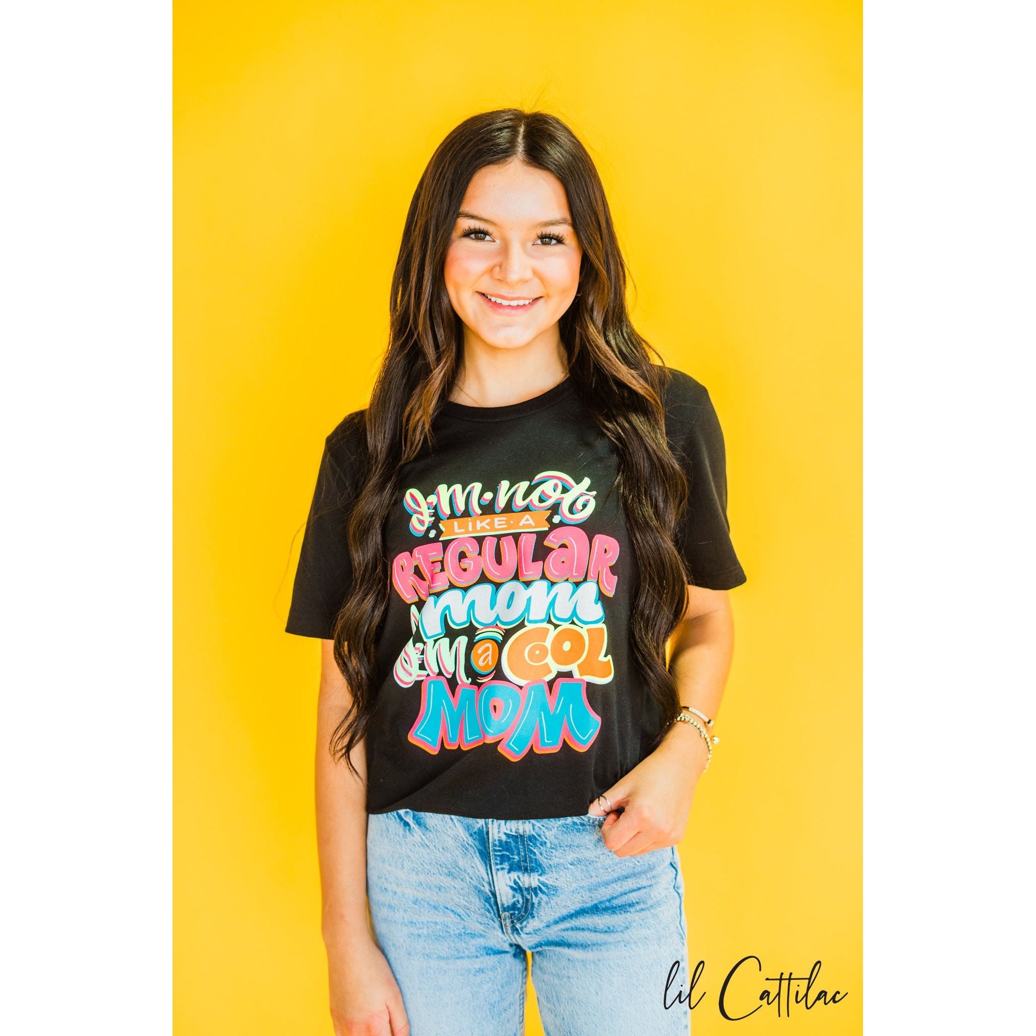 1. Playful "Cool Mom" Design: The highlight of this tee is the witty statement it carries: "I'm not like a regular mom, I'm a cool mom." The bold font and playful arrangement of words add a touch of humor, capturing the essence of the modern and confident mom. The design is a nod to the cool, unconventional, and laid-back approach that many moms embody.