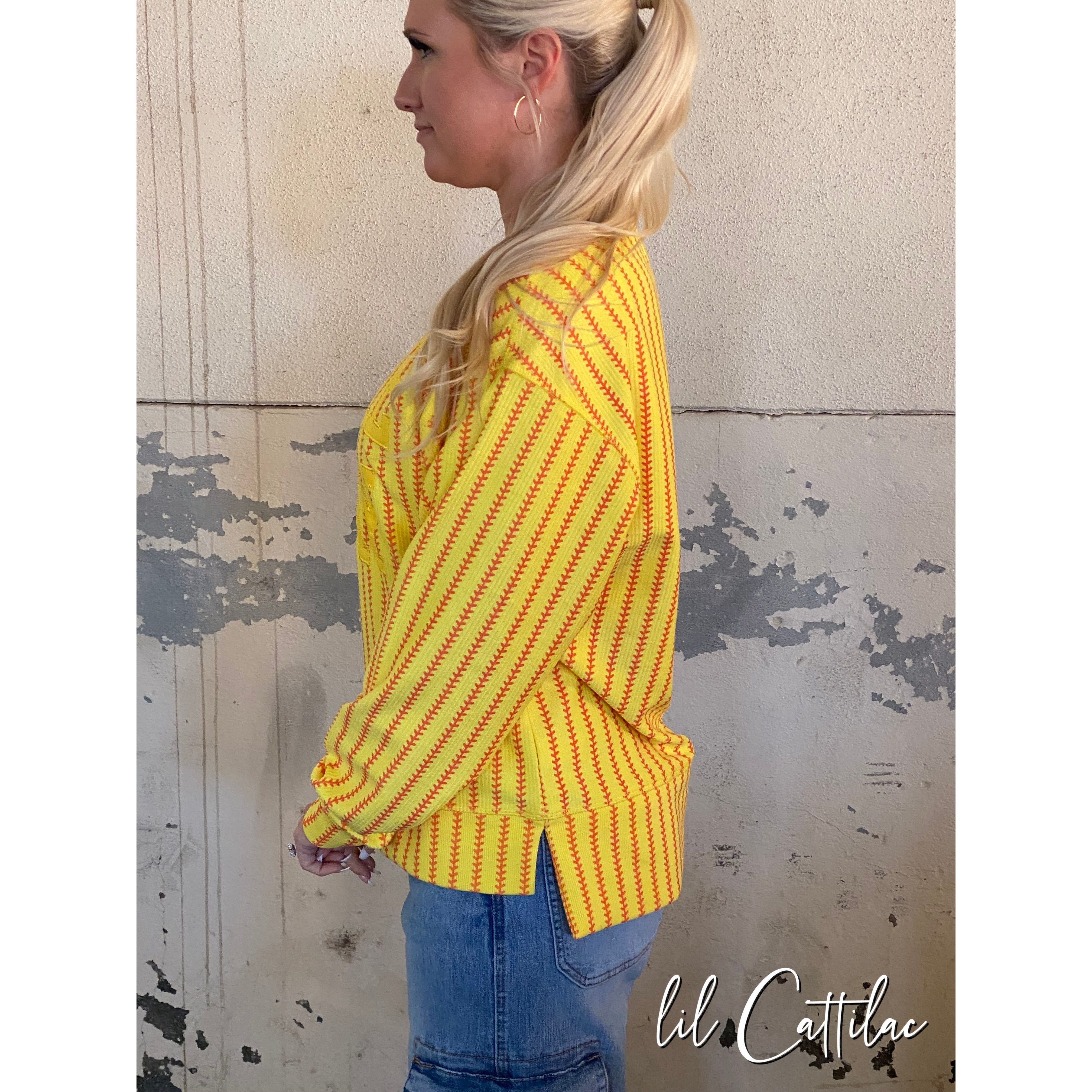 • Shown on a Softball Cozycord Crewneck w/ Side Slits