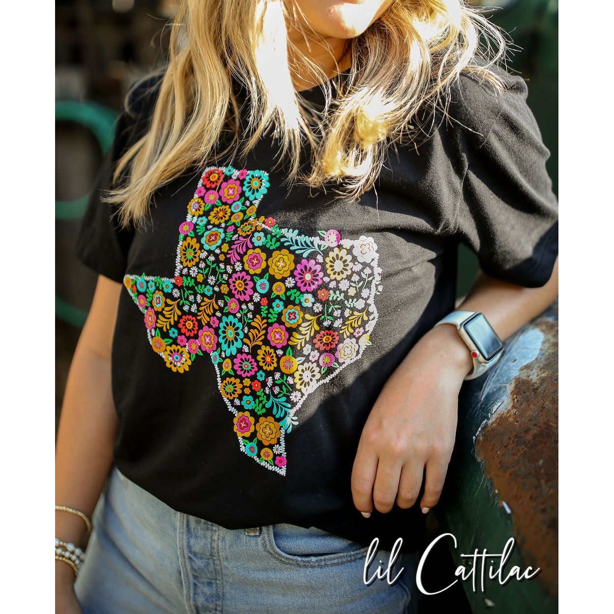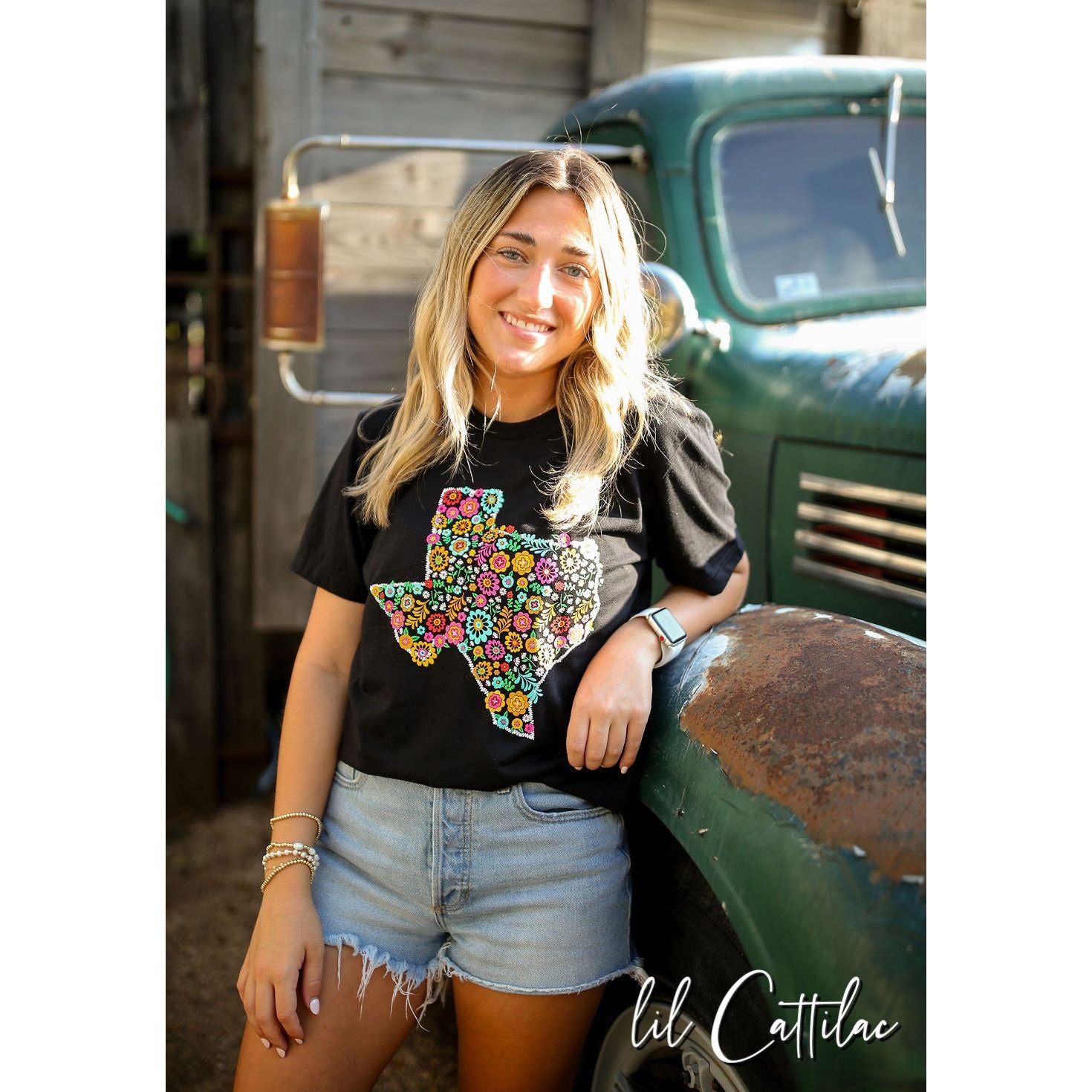 The State of Texas is one of the most recognizable shapes in the world, and we've given it a new twist by filling it with a beautiful floral pattern. The bold design is both striking and feminine, making it perfect for all types of occasions. Whether you're running errands, heading to a concert, or just hanging out with friends, this tee is sure to turn heads.
