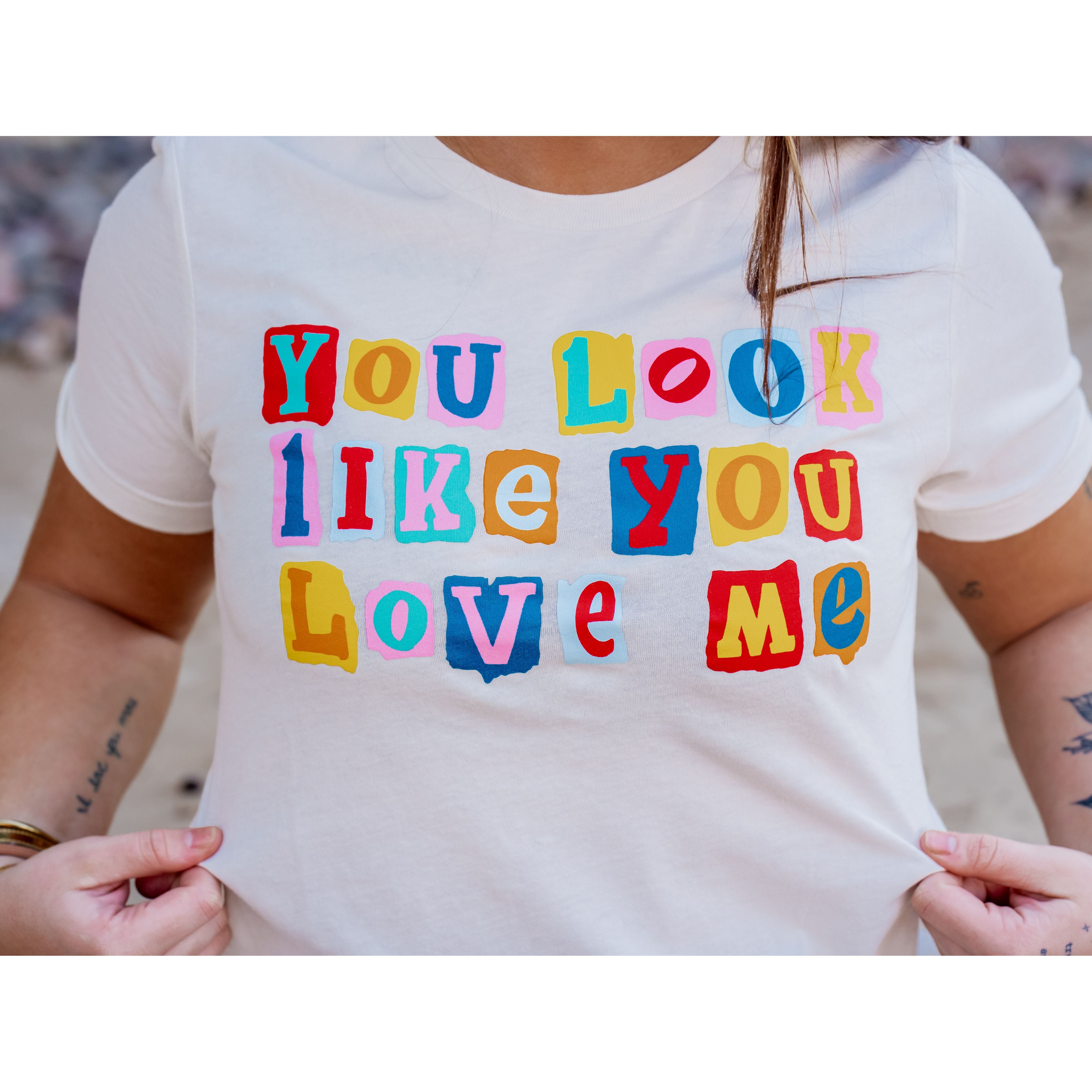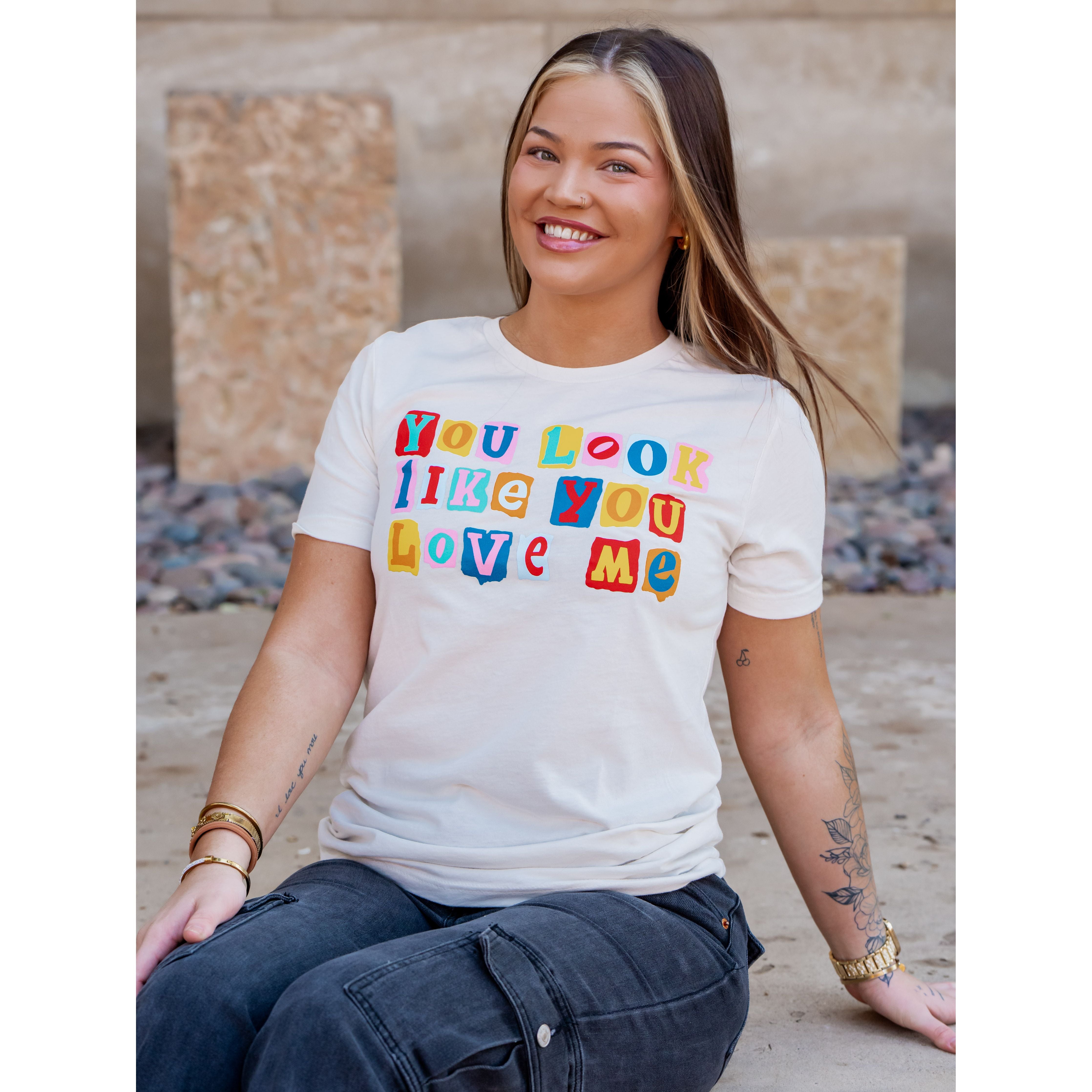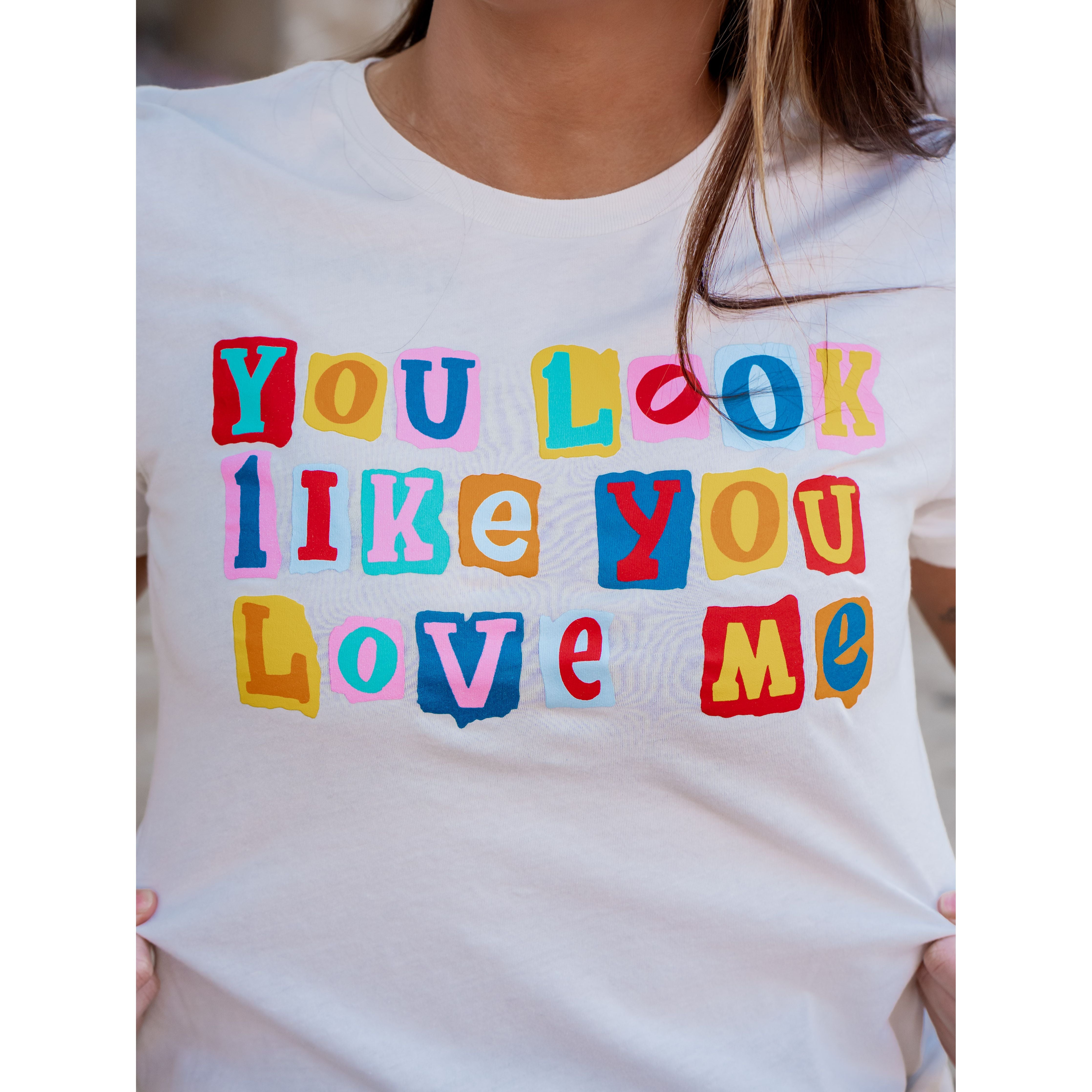You look like you love me! Celebrate Valentine's Day with this playful and flirty graphic tee. Featuring fun scrapbook-style lettering that says "You Look Like You Love Me," this tee is perfect for showing off your sweet and sassy side all February long!