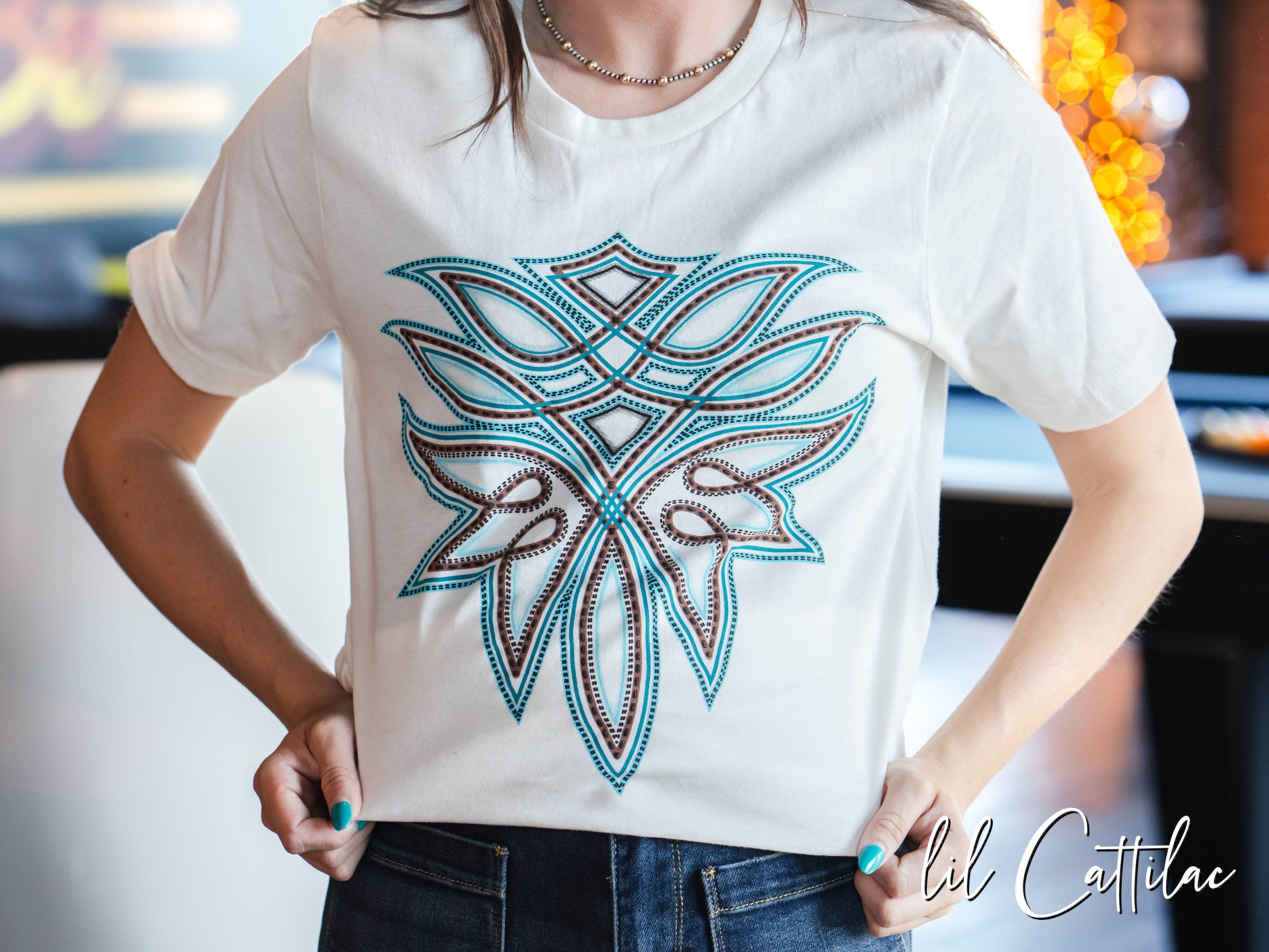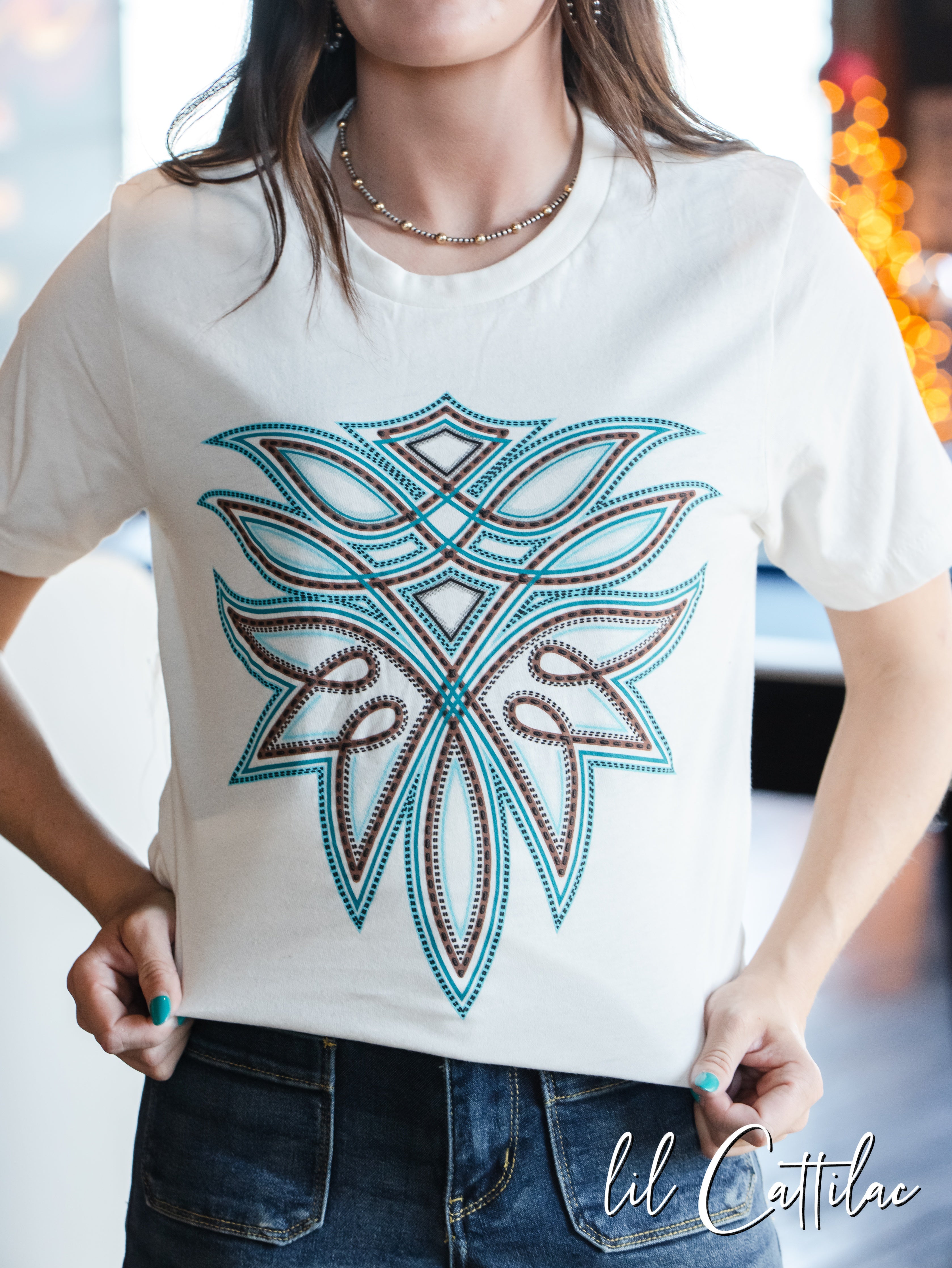 Boot Stitch on Vintage White - Western Tee