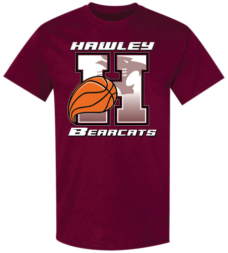 This is a Pre-Order! The DEADLINE to order is on Sunday, November 23rd. Show your support for the Hawley Bearcat Basketball team with some merchandise. Hawley Basketball design on the front of a Maroon Tee. 6 different shirt options to choose from Short Sleeve or Long Sleeve - Cotton or Wicking, Crewneck Sweatshirt or Hoodie.