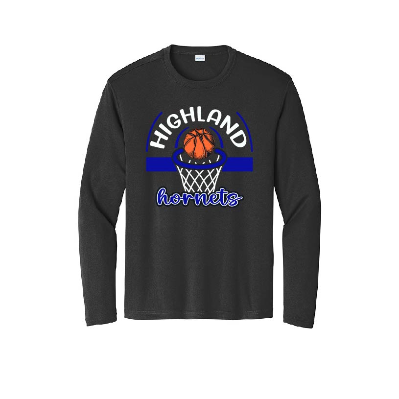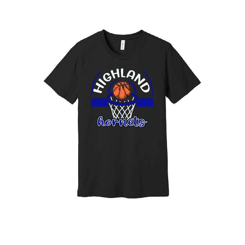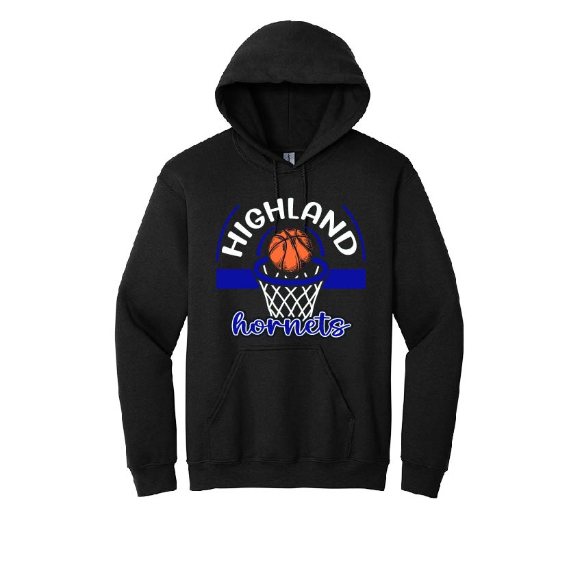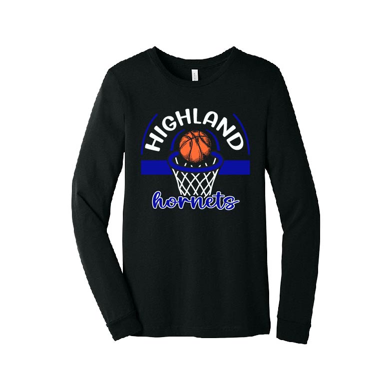 This is a Pre-Order.  The DEADLINE to order is Thursday, November 20th.  Show your Highland Hornets support with some Basketball merchandise.  Highland Hornets Basketball design on Black.  6 Shirt options are available to choose from Short Sleeve or Long Sleeve Cotton and Dry-Fit, Crewneck Sweatshirt or Hooded Sweatshirt.