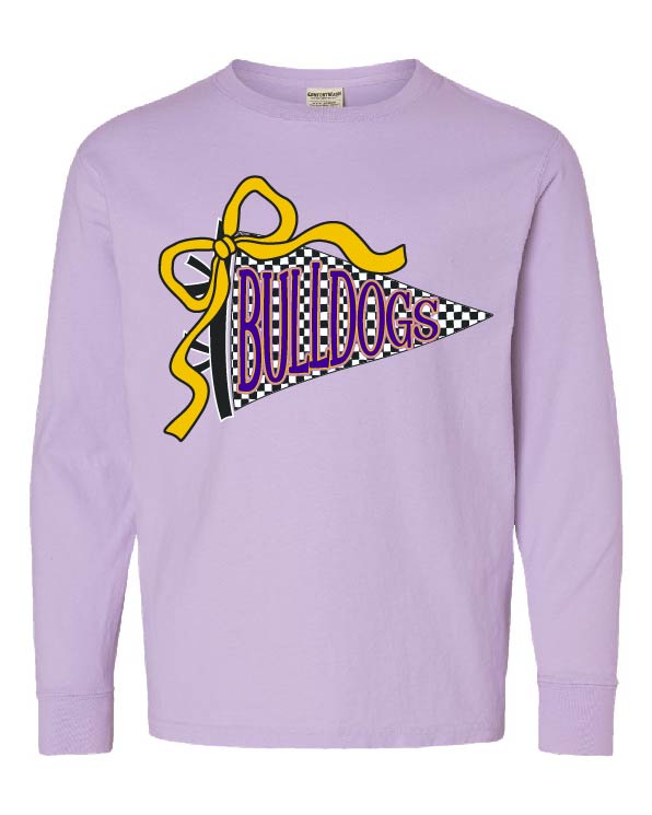 This is a PRE-ORDER...Deadline to order is Sunday, November 23rd! Show your spirit with a Wylie Bulldogs sweatshirt in support of the Wylie PTO! 2 different options of shirt styles to choose from a Long-Sleeve Tee or Crewneck Sweatshirt. Wylie Bulldogs design on the front of a Violet tee.