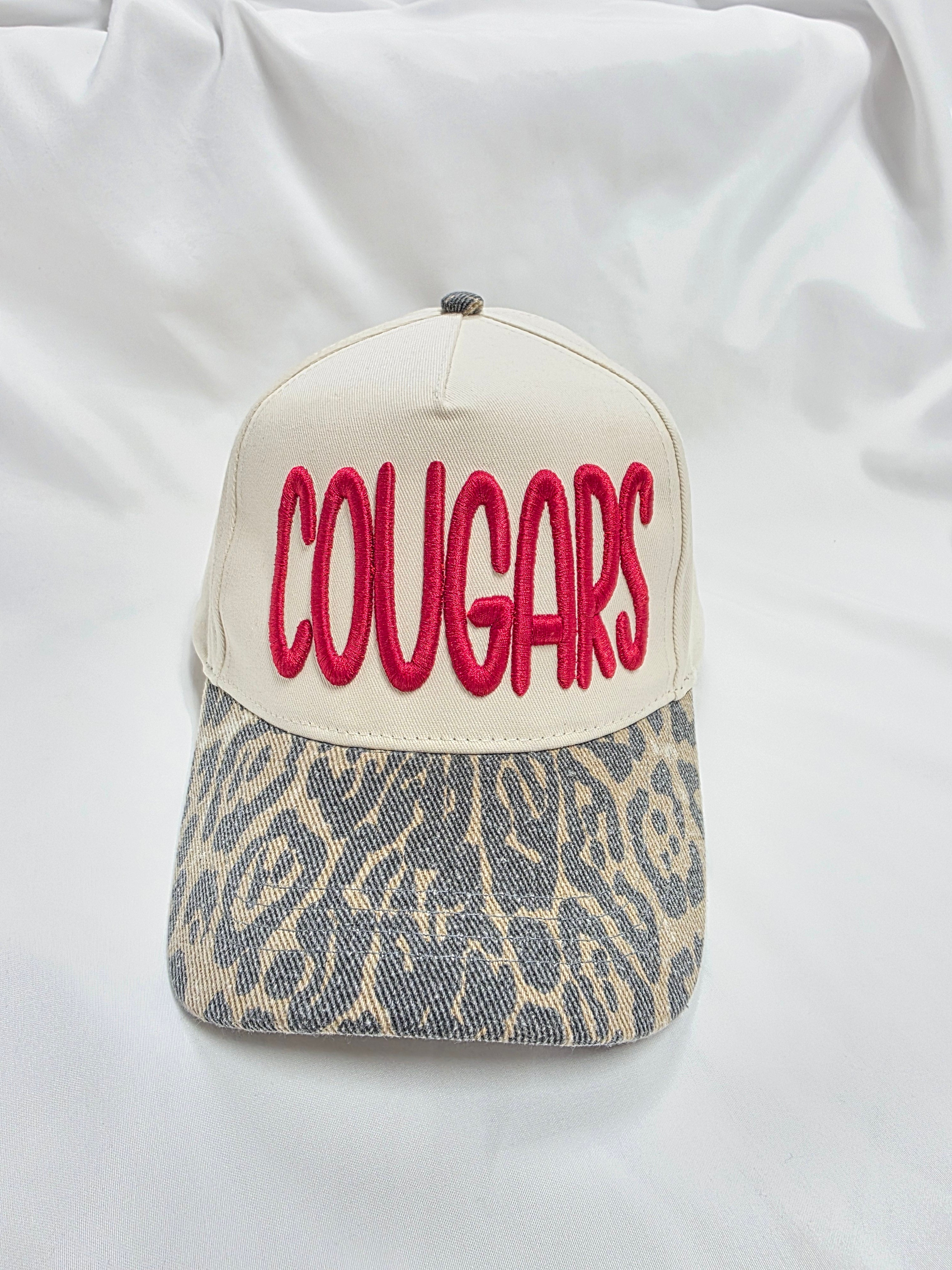 Show your spirit in this Cougars stitched with puff on a Leopard Bill Trucker Cap! The 3D embroidery makes it so fun.