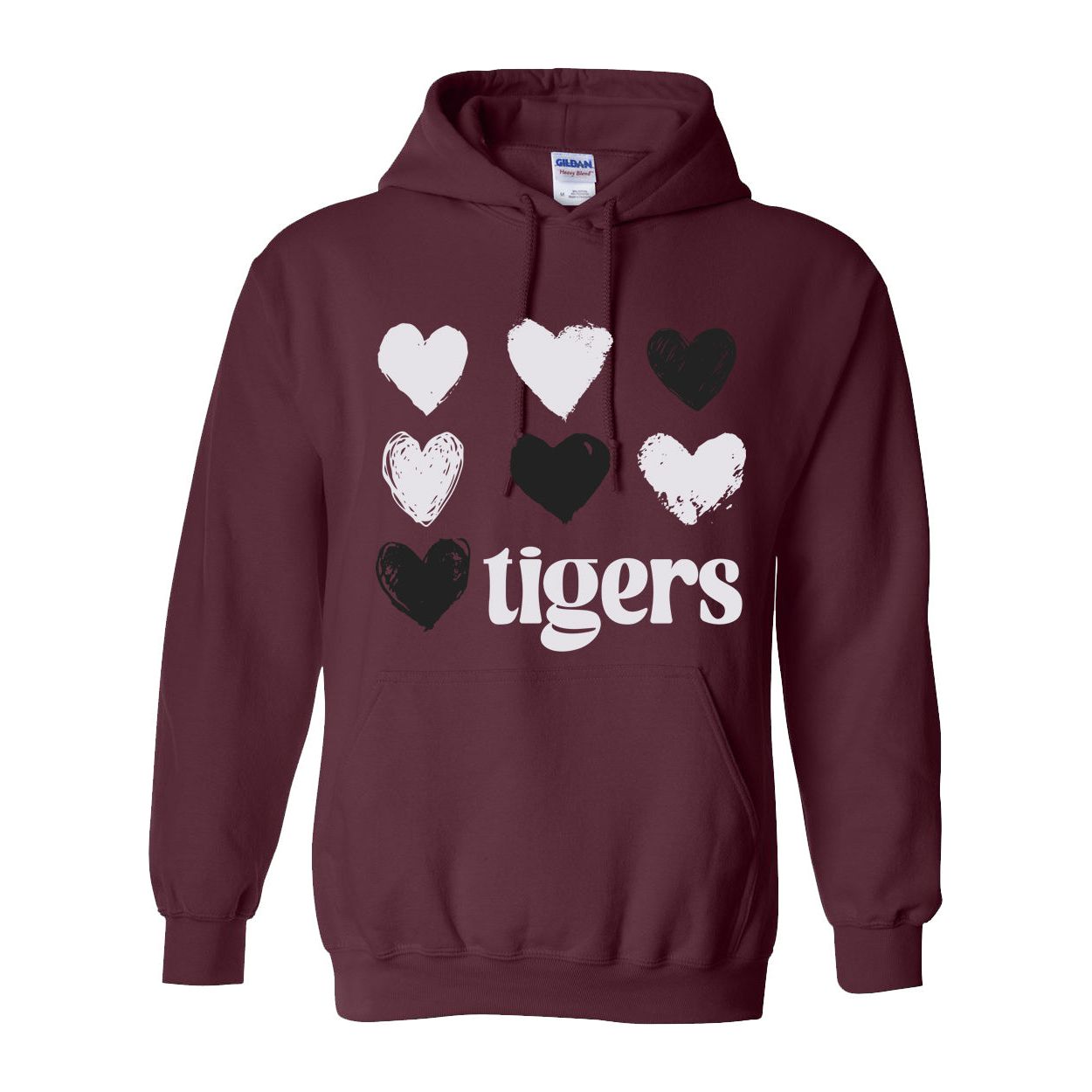 Show your Spirit with the perfect Martinez Tigers Foil Hearts Hoodie!