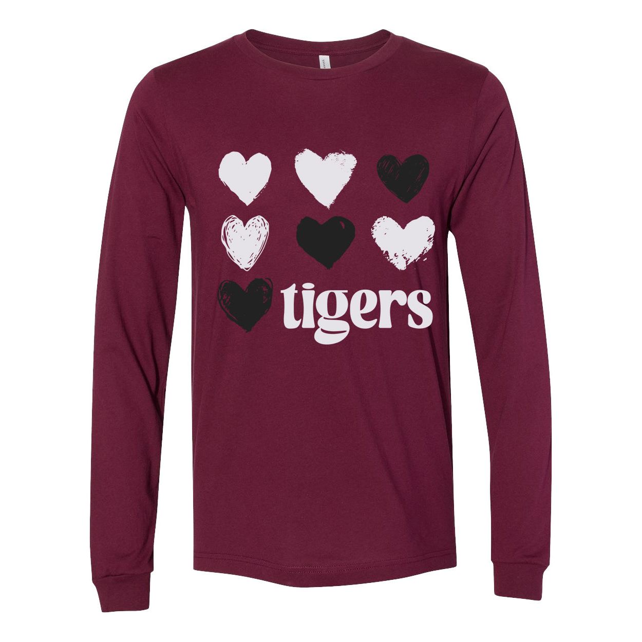 Martinez Tigers - Foil Hearts Long Sleeve T-Shirt