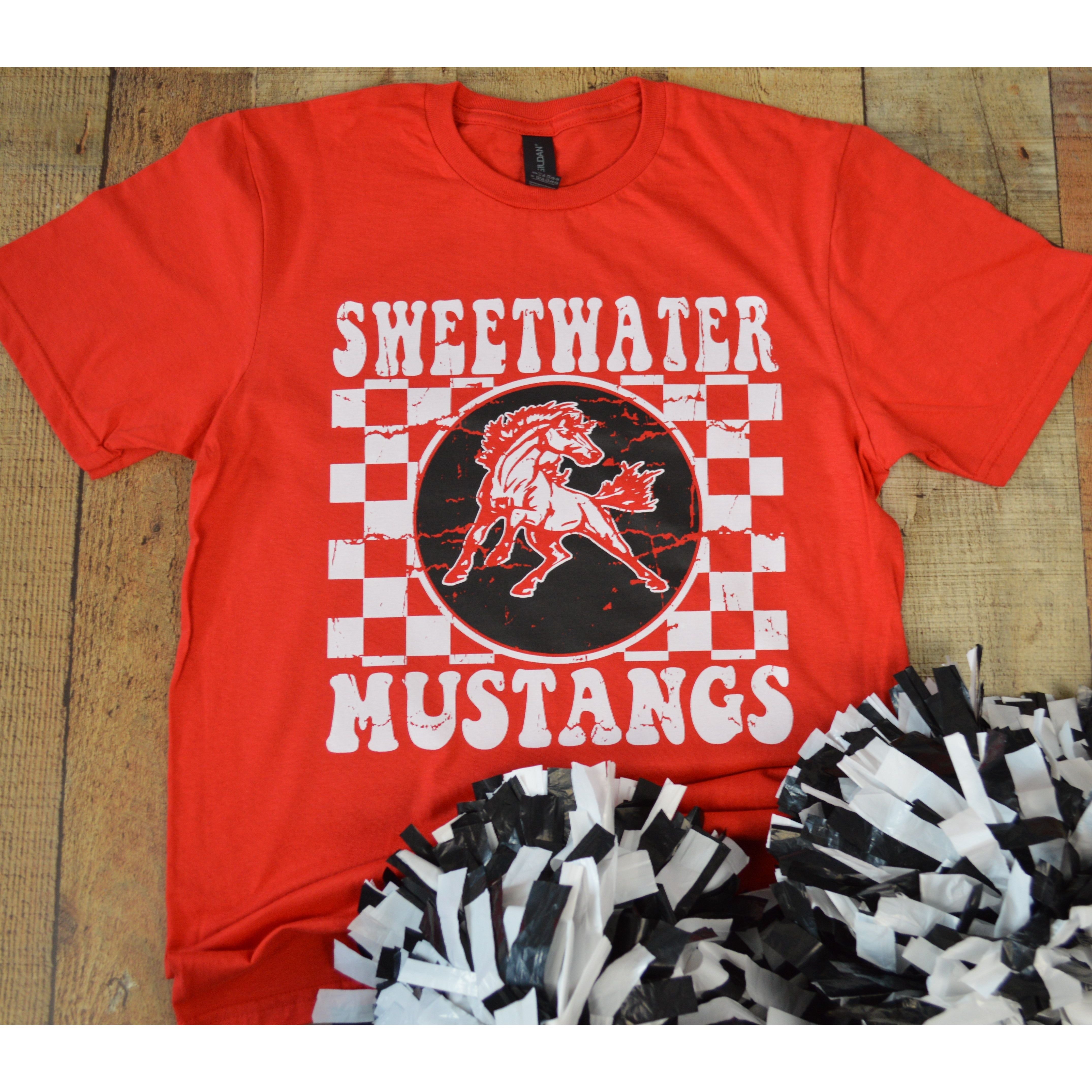 Show your Spirit with the perfect Sweetwater Mustangs Checkered T-Shirt!