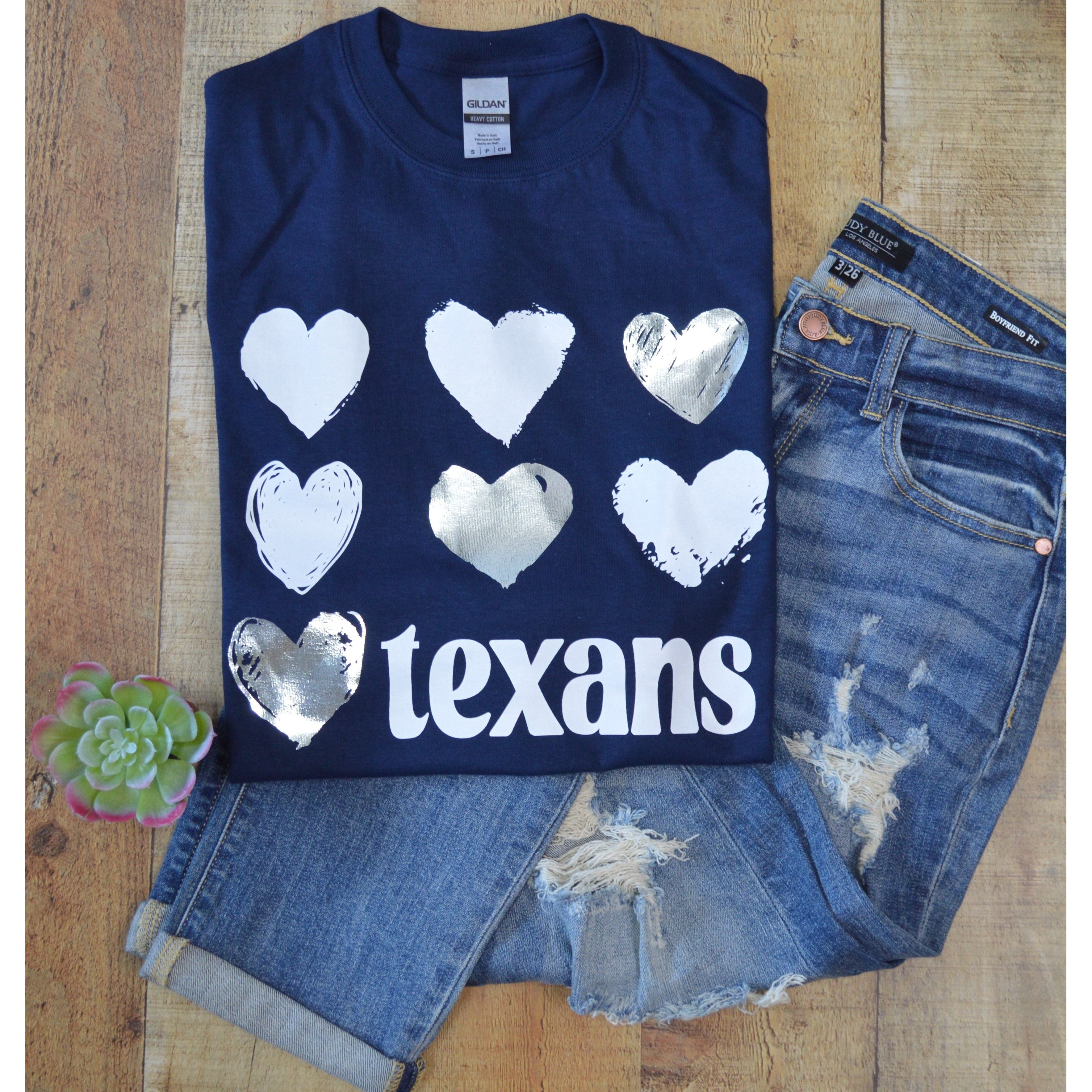 Show your Spirit with the perfect Thomas Texans Foil Hearts T-Shirt!