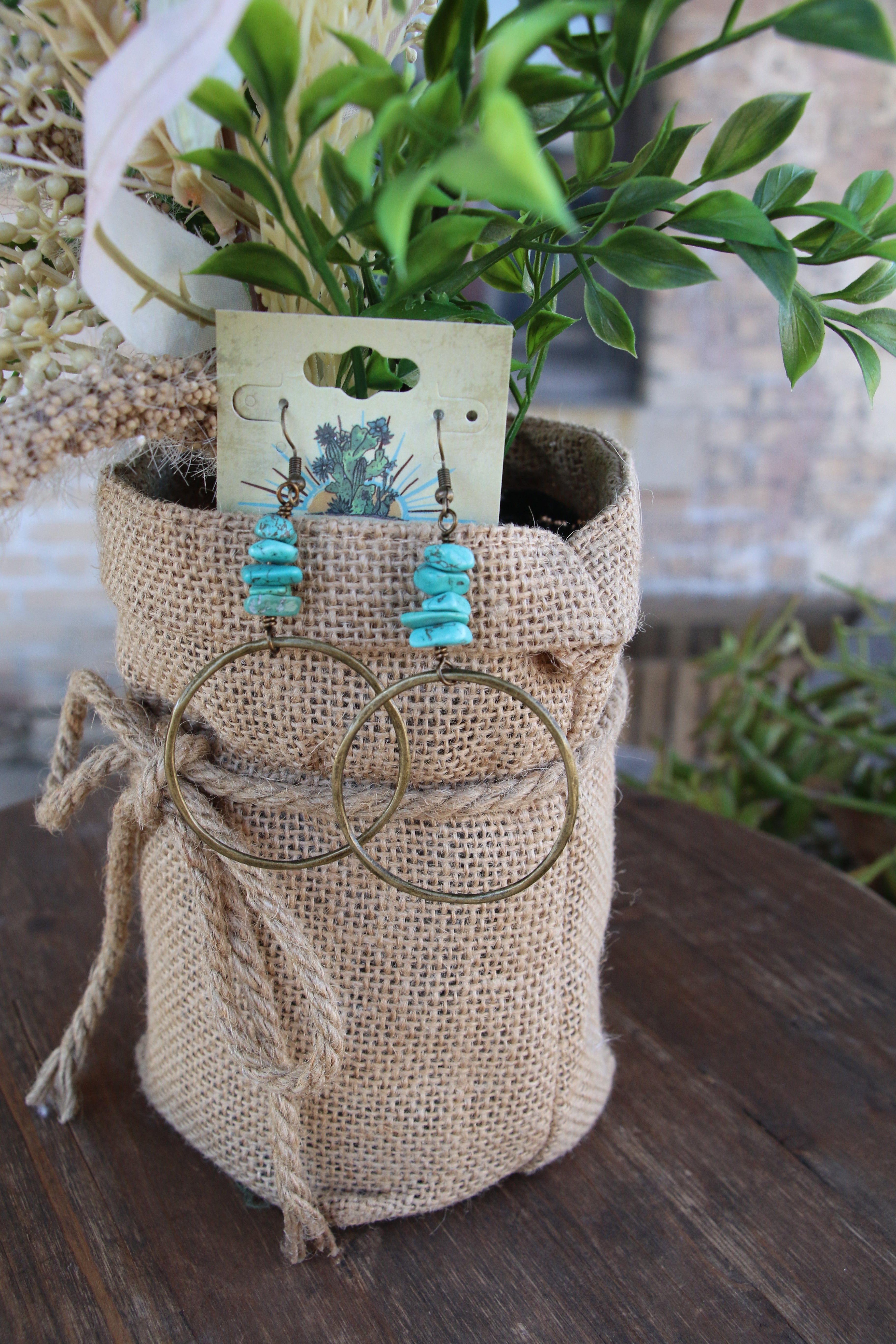 12236 R3-94 AG HOOP WITH TURQ CHIPS Earrings