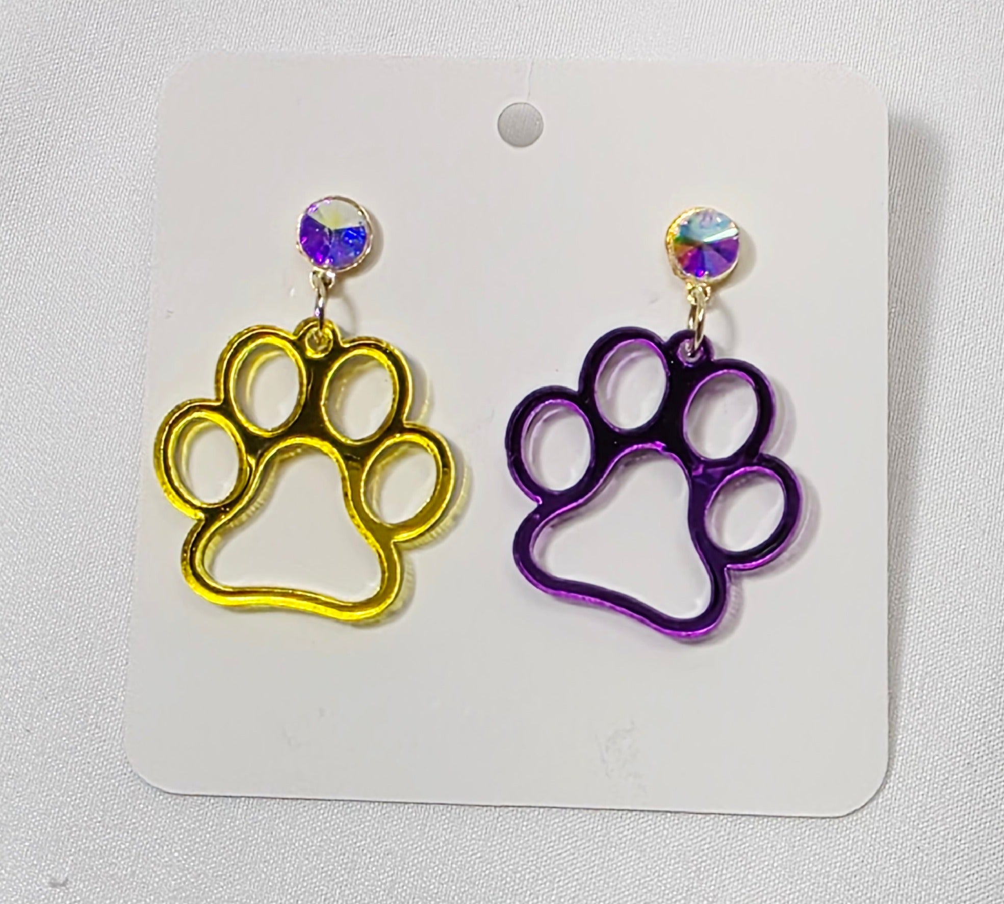 Iridescent post with Purple & Gold acrylic. 1 inch paw.